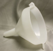 This funnel is made of durable, food-grade plastic. The smooth inner surface makes it easy to clean and sanitize. And the slender stem fits easily into carboys, gallon jugs, and other small openings. This plastic funnel does not come with a straining screen, and the interior does not have a notch to lock screens in place.