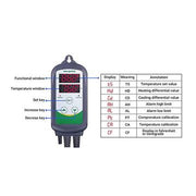 | Temperature Control Mode | On/Off Control, Heating | Temperature Control Range | -50~99 °C / -58~210 ° F |