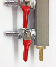 Manifolds allow you to have one CO2 tank with multiple lines. Each line can be turned off individually without affecting flow to other kegs. Each ball valve contains a check valve that ensures no beer or gas can flow between the two kegs. The barbs are all 5/16", standard for gas line in the beer industry.