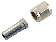 Stainless steel barbed stem and nut set.  The barbs come in either 1/4, 5/16, or 3/8". The nut is 1/4" mfl.